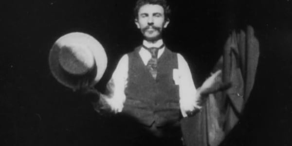 William K.L. Dickson brings his hat from his one hand to the other and moves his head slightly, as a small nod toward the audience. This was the first film produced by the Edison Manufacturing Company to be shown to public audiences and the press.